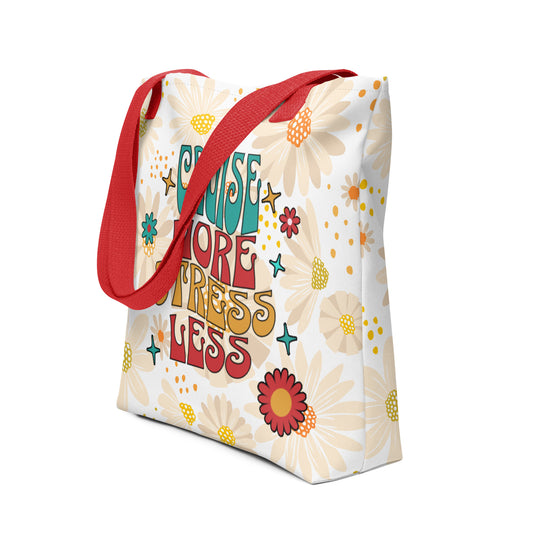 Cruise More Stress Less Eco-Friendly Canvas Tote Bag - Flower Edition
